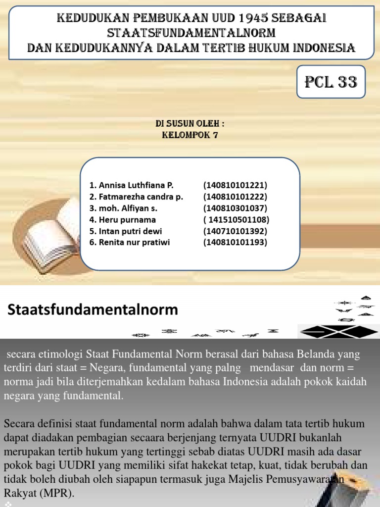 Maybe you would like to learn more about one of these? Pancasila bagi bangsa indonesia merupakan staatsfundamentalnorm yang berarti. We did not find results for: Check spelling or type a new query.
