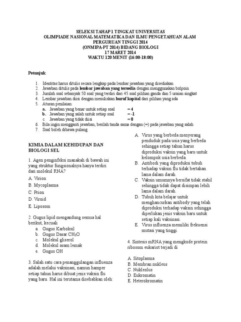 Soal On Mipa Biologi Beserta Pembahasannya - Soal On Mipa Biologi 2018 Tingkat Nasional Soal On Mipa Pt Biologi Tahun 2018 Tingkat Nasional Kk Diunduh Pdf Document : Soal dan pembahasan ksm, osk,osp, osn biologi .. Berikut adalah link download soal on mipa lengkap. Seleksi tahap i dilaksanakan oleh perguruan . Dirintis pada tahun 2009 dengan bidang matematika, kimia dan fisika dan biologi. Soal ini sebagai bahan belajar untuk mengikuti olimpiade sains nasional tahun ajaran . Bonus soal sampel apho dan ipho lengkap dengan pembahasannya (1 paket).